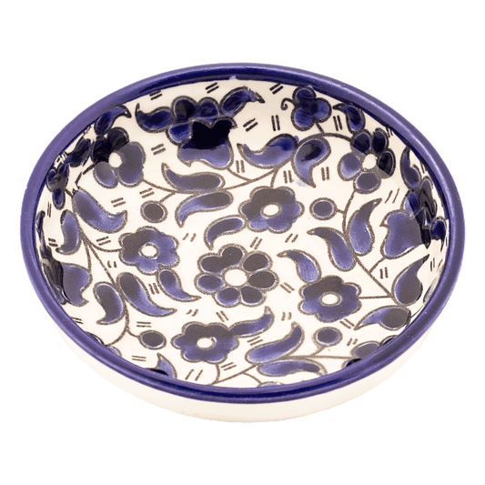 Three Piece Armenian Ceramic Dipping Set - Blue Floral