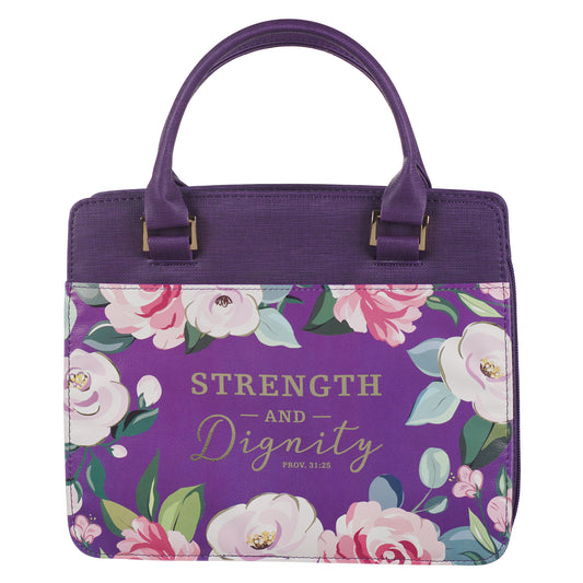 Strength and Dignity Purple Floral Purse-style Bible Cover - Proverbs 31:25