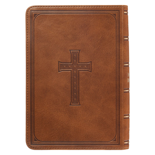 Saddle Tan Faux Leather Large Print Compact King James Version Bible