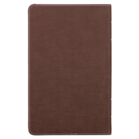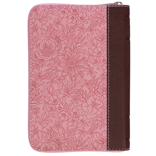 Pink and Saddle Tan Faux Leather Mini Pocket King James Version Bible with Zippered Closure