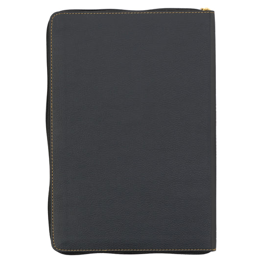 Black Faux Leather Large Print Thinline KJV Bible with Thumb Index and Zippered Closure