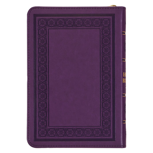 Iris Purple Faux Leather Compact King James Version Bible with Zippered Closure