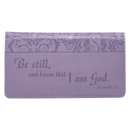 Be Still and Know Lilac Purple Faux Leather Checkbook Wallet - Psalm 46:10