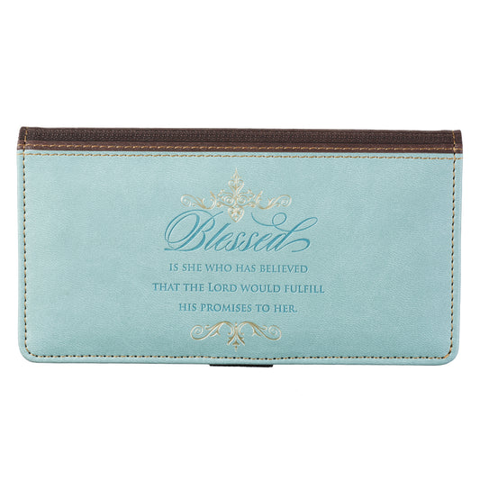 Blessed Blue Faux Leather Checkbook Wallet - Luke 1:45