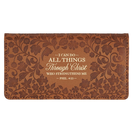 All Things Honey-brown Faux Leather Checkbook Wallet - Philippians 4:13