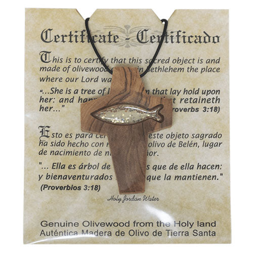 Olive Wood Cross with Fish