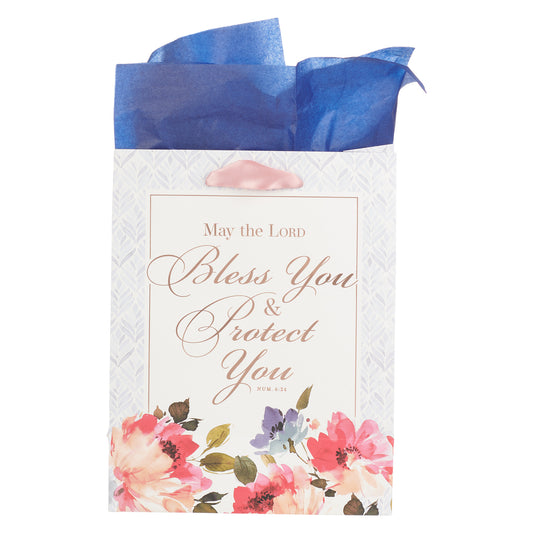 Bless You and Protect You Blue Floral Medium Gift Bag - Numbers 6:24
