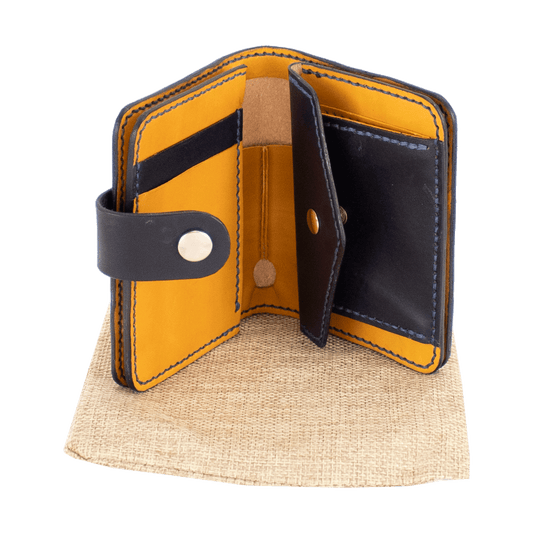 Handcrafted Blue Leather Wallet with Snap Closure & Coin Pocket