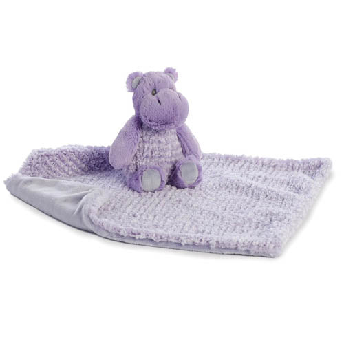 Little Pitter Patter Rattle & Swaddle- Purple Hippo