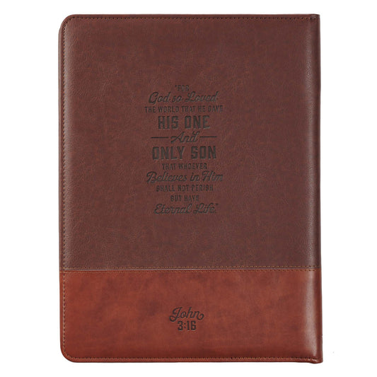 John 3:16 Cross Two-tone Brown Faux Leather Portfolio Folder