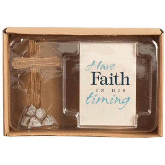 Cross and "Have Faith in His Timing" Blessing Card Set