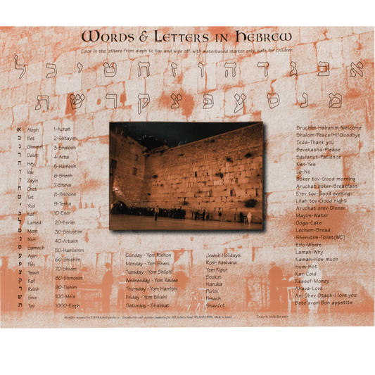 Hebrew Letters & Useful Words (2 sided) Poster/Placemat