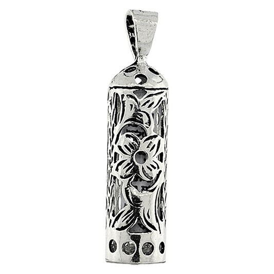 Floral Mezuzah Necklace - Sterling Silver