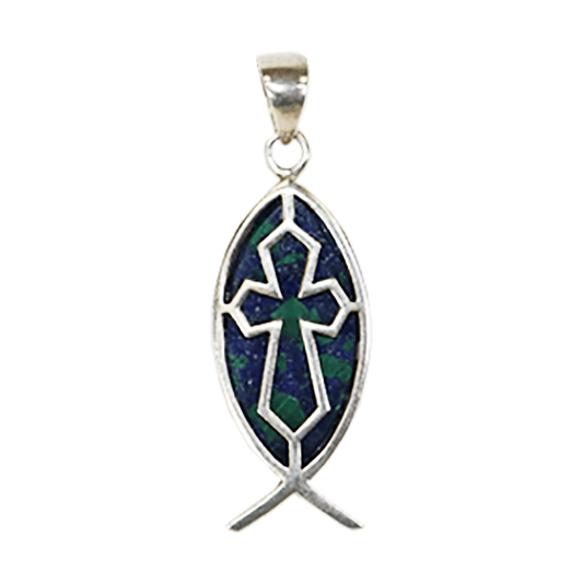Eilat Stone Fish & Cross Necklace