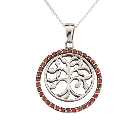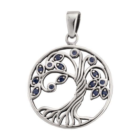 Tree of Life Sterling Silver Necklace with Crystals - Blue