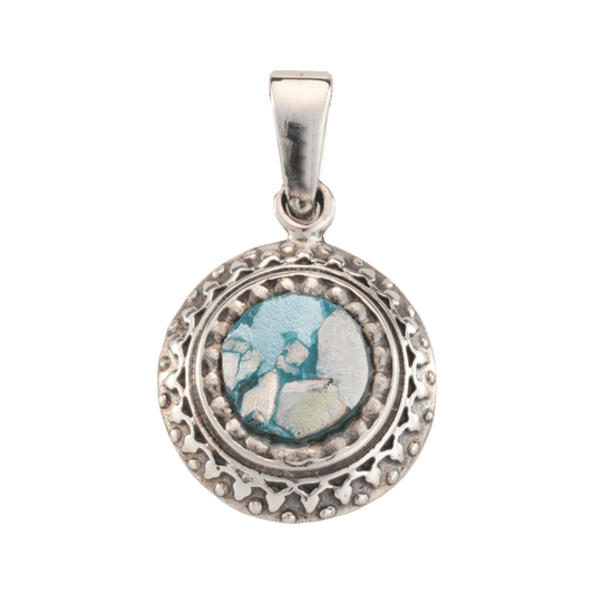 Roman Glass Circle Necklace with Silver Detailing