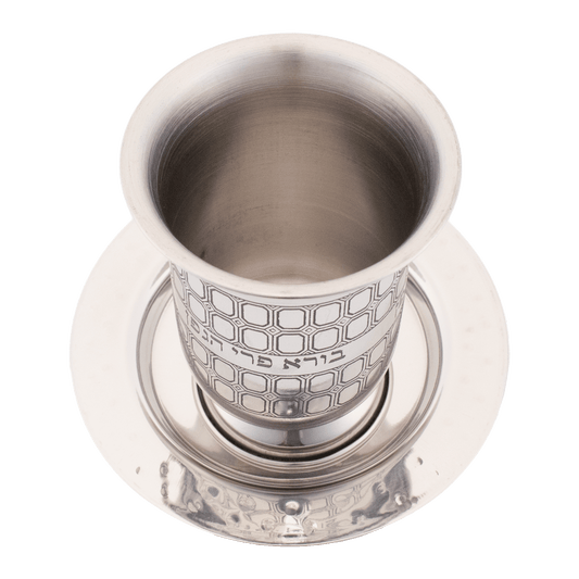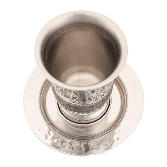 Stainless Steel Engraved Kiddush Cup with Rounded Saucer
