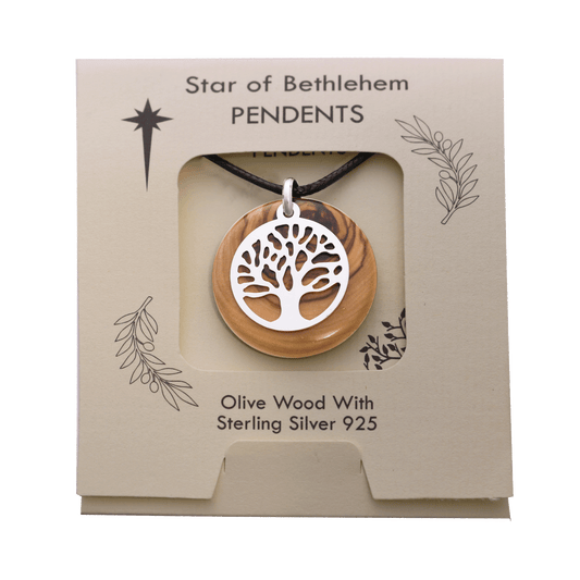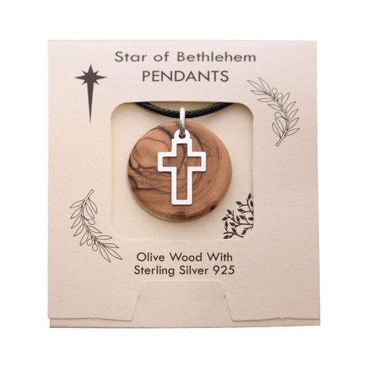 Olive Wood Fish w/Cross Necklace on Cord (Small)