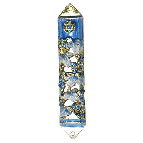 Silver Plated Car Mezuzah with Divine Name and Blue Stone