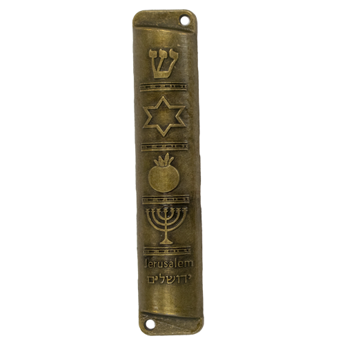Jerusalem Wall/Menorah Olive Wood Mezuzah Case