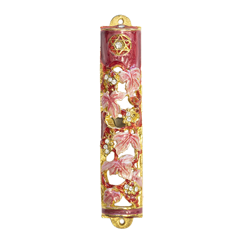 Nickel Plated Breastplate Fleur Mezuzah W/Shaddai