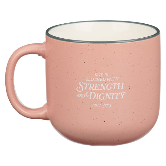 Strength and Dignity Pink Floral Ceramic Coffee Mug - Proverbs 31:25