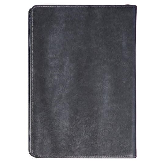 Be Strong and Courageous Classic Gray Faux Leather Journal with Zipper Closure - Joshua 1:9