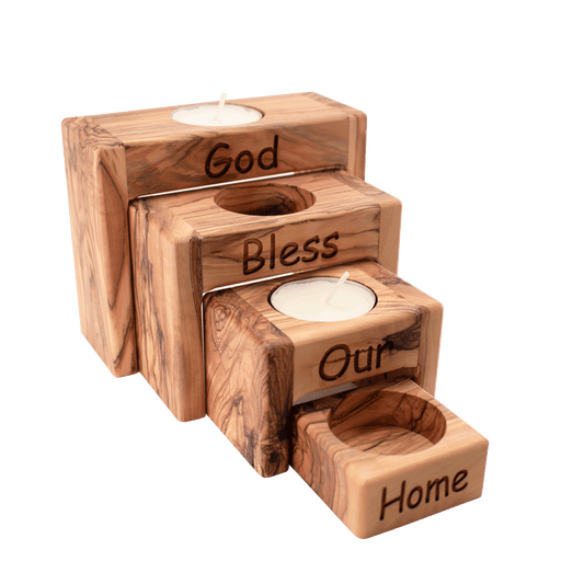 Olive Wood Lord's Prayer Tea Light Candle Holder