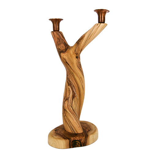Olive Wood Hand Carved Candelabra (One-Of-A-Kind) - 2 Stems - Style A