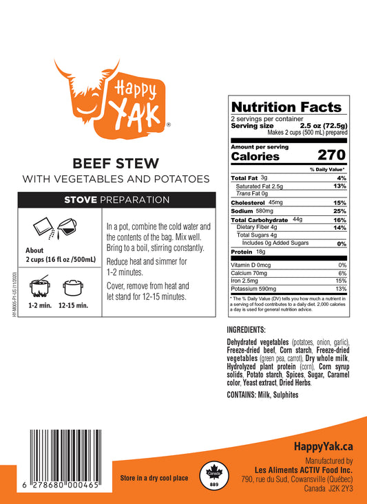 Happy Yak Beef Stew with Vegetables and Potatoes