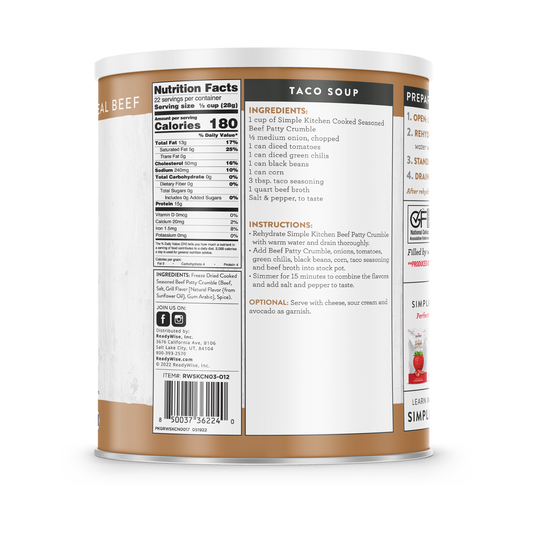Simple Kitchen #10 Can: Freeze-Dried Seasoned Beef Patty Crumbles
