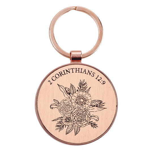 Grace Upon Grace Indigo Rose Gold Metal Epoxy-coated Keychain - John 1:16