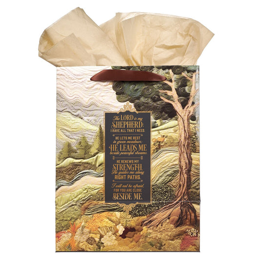 The Lord is my Shepherd Green Meadow Tapestry Large Portrait Gift Bag - Psalm 23:1-4