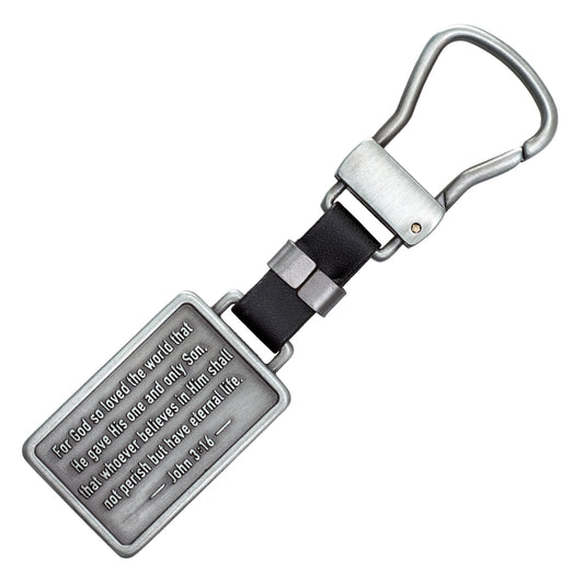 John 3:16 Silver Metal Cross Key Ring in Gift Tin