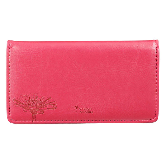 Through Christ Fluted Iris Pink Faux Leather Checkbook Wallet - Philippians 4:13