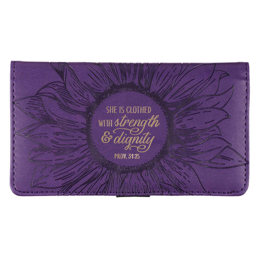 Strength and Dignity Purple Faux Leather Checkbook Cover - Proverbs 31:25