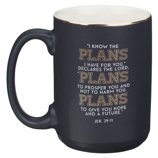 The Plans Modern Blue Grid Ceramic Coffee Mug - Jeremiah 29:11