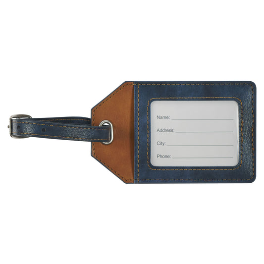 Strong and Courageous Butterscotch and Navy Faux Leather Luggage Tag - Joshua 1:9