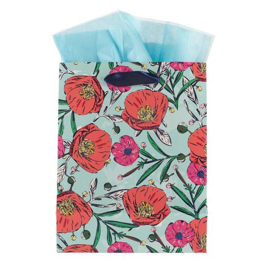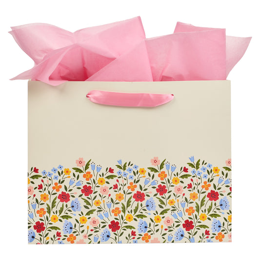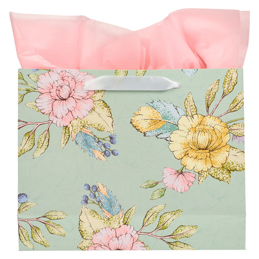 Every Good & Perfect Gift Peach Floral Large Landscape Gift Bag and Card Set - James 1:17