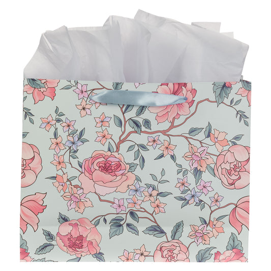The Lord is With You Pink Floral Large Portrait Gift Bag - Zephaniah 3:17