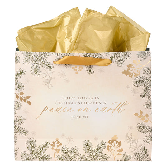 Glory to God Green Pines Large Landscape Christmas Gift Bag with Card - Luke 2:14