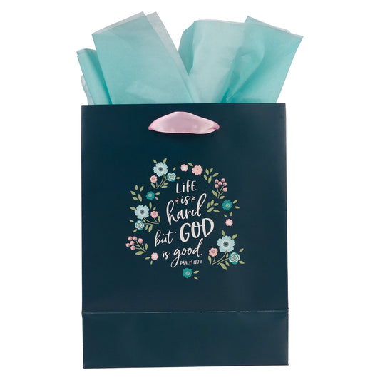 Be Still Pink Spring Floral Large Portrait Gift Bag - Psalm 46:10