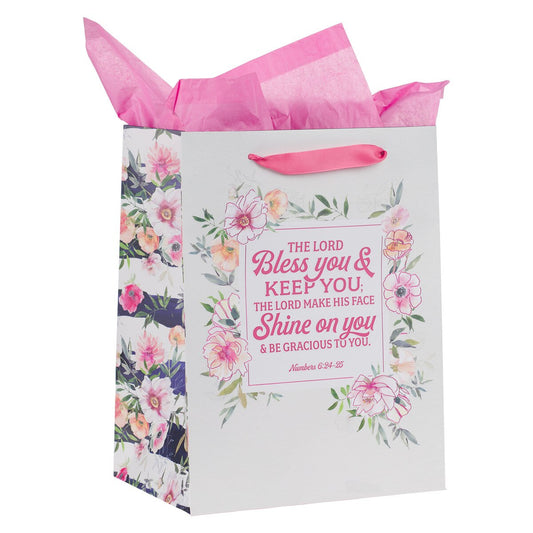 Bless You and Keep You Pink Floral Large Portrait Gift Bag with Card Set - Numbers 6:24-25