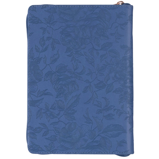Be Still and Know Midnight Blue Floral Faux Leather Classic Journal with Zipper Closure - Psalm 46:10