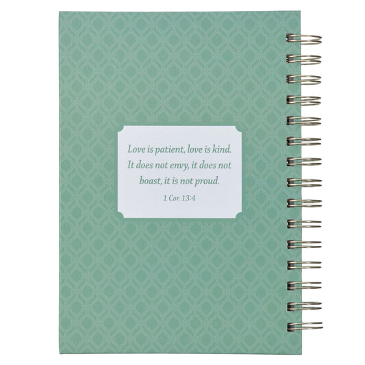 Love is Patient Green Hummingbird Large Spiral Journal - 1 Corinthians 13:4