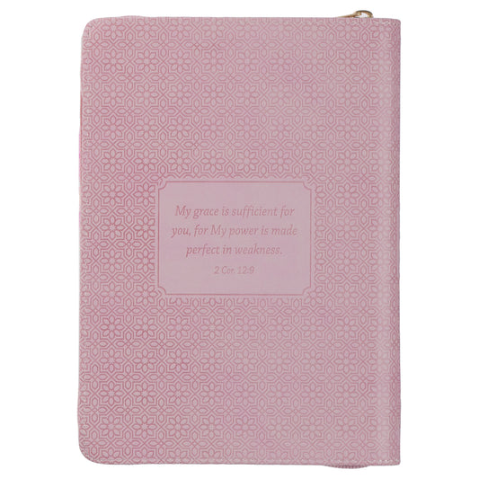 My Grace is Sufficient Hummingbird Pink Classic Journal with Zipper Closure - 2 Corinthians 12:9