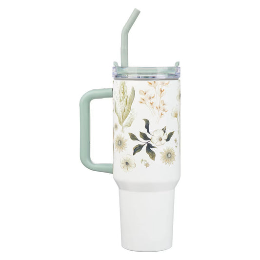 Be Still Teal Meadow 40 Oz Tumbler with Reusable Straw - Psalm 46:10