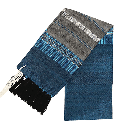 Handwoven Silk Prayer Shawl Set - Blue & Gray - 39.5" By Gabrieli