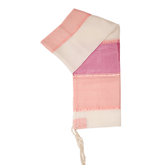 Wild Silk Prayer Shawl Set - Cream, Fuchsia & Peach - 19" by Gabrieli