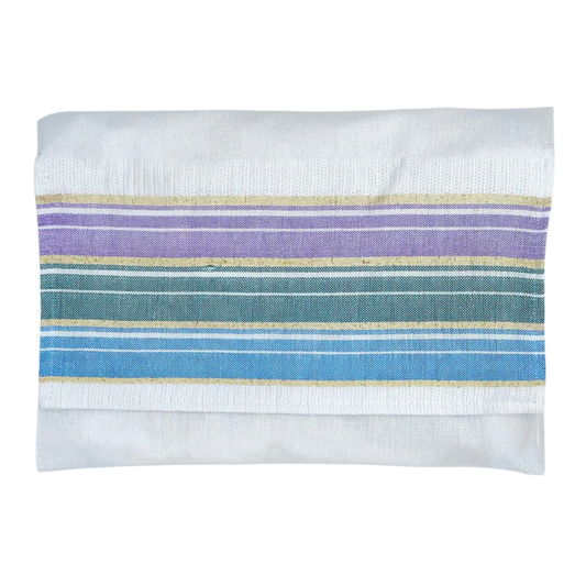 Handwoven Wild Silk Prayer Shawl Set - Cream & Pastel Stripes - 40" by Gabrieli